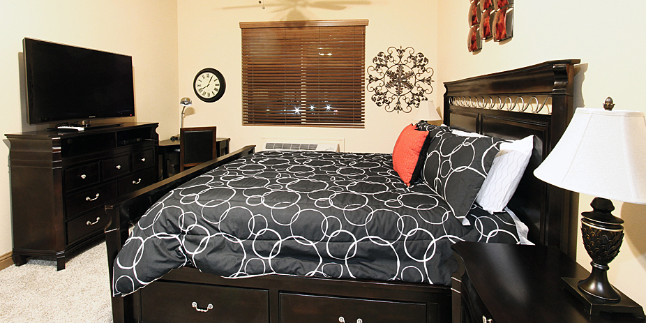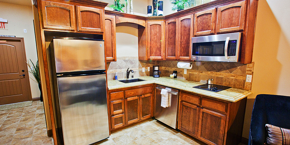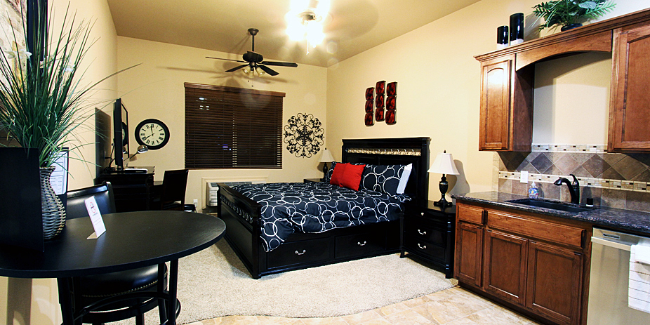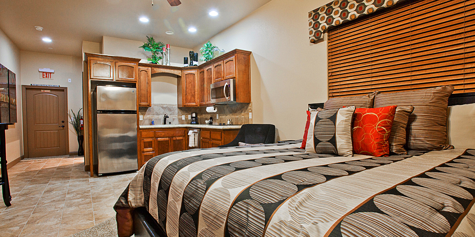 Our most economical condo is equipped with kitchenette (Building A and B only), private bathroom, king size bed, extra seating, TV and wireless Internet access. Call for availability.